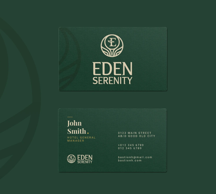 The challenge was to create a luxury hospitality identity that felt calm and immersive without appearing generic or overly traditional. Eden Serenity needed a brand presence that communicated exclusivity, warmth, and trust while remaining versatile across hotel signage, interiors, digital platforms, and restaurant experiences. The identity also had to resonate emotionally with guests, conveying a sense of escape, refinement, and long-term brand value.