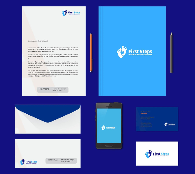 Richest Branding crafted a gentle yet professional brand identity for First Steps, designed to connect emotionally with parents while maintaining clinical credibility. The visual system focuses on clarity, warmth, and ease of understanding, making medical communication feel human and accessible. From brand stationery to product applications and environmental branding, every element reinforces trust, care, and reliability. The result is a cohesive identity that positions First Steps as a dependable, compassionate partner in early childhood and maternal care.