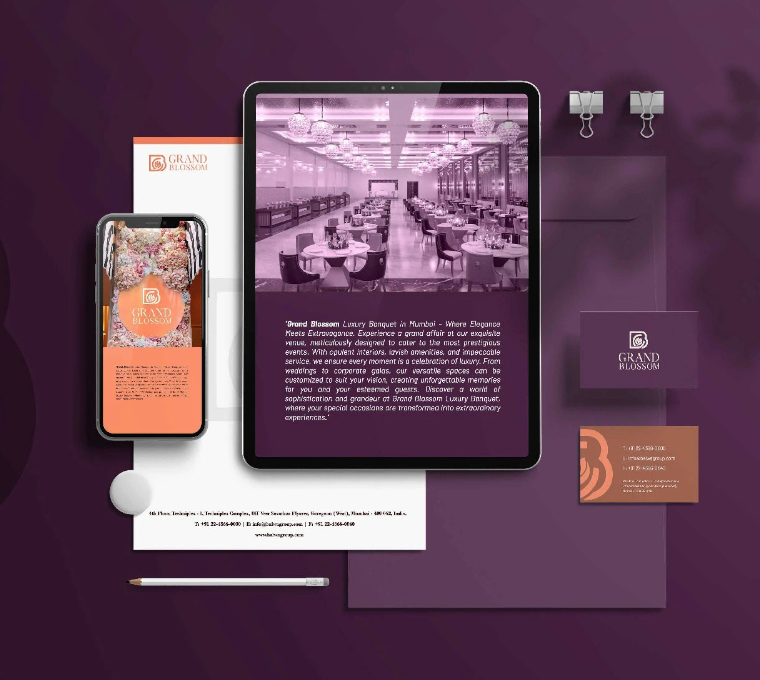 Grand Blossom is a luxury banquet and hospitality destination designed for grand celebrations, refined experiences and timeless elegance. Positioned in the premium segment, the brand represents sophistication, warmth and attention to detail, offering a perfect setting for weddings, corporate gatherings and social events. Richest Branding partnered with Grand Blossom to craft a refined brand identity that reflects opulence, trust and modern hospitality standards.