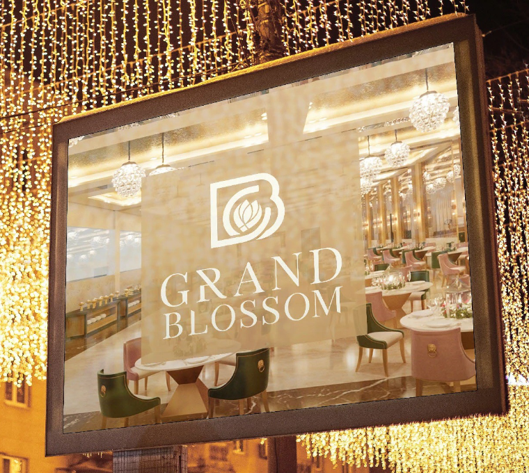 Richest Branding created a luxury-driven identity for Grand Blossom that reflects grandeur, hospitality and refined celebration. Our design approach focused on elegance, spatial harmony and premium detailing, ensuring the brand feels welcoming yet prestigious. From architectural signage to interior branding elements, every touchpoint reinforces a sense of sophistication and trust. This cohesive identity elevates Grand Blossom as a distinguished venue for memorable events, positioning it as a landmark destination in the luxury hospitality and banquet space.