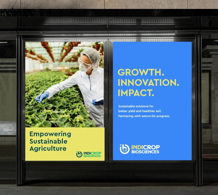 The branding system for Indicrop Biosciences reflects a commitment to sustainable agriculture and scientific advancement. Every visual element was designed to reinforce purpose, responsibility, and long-term value. From outdoor campaigns to brand communication, the identity maintains a strong and consistent presence that supports recognition and trust.