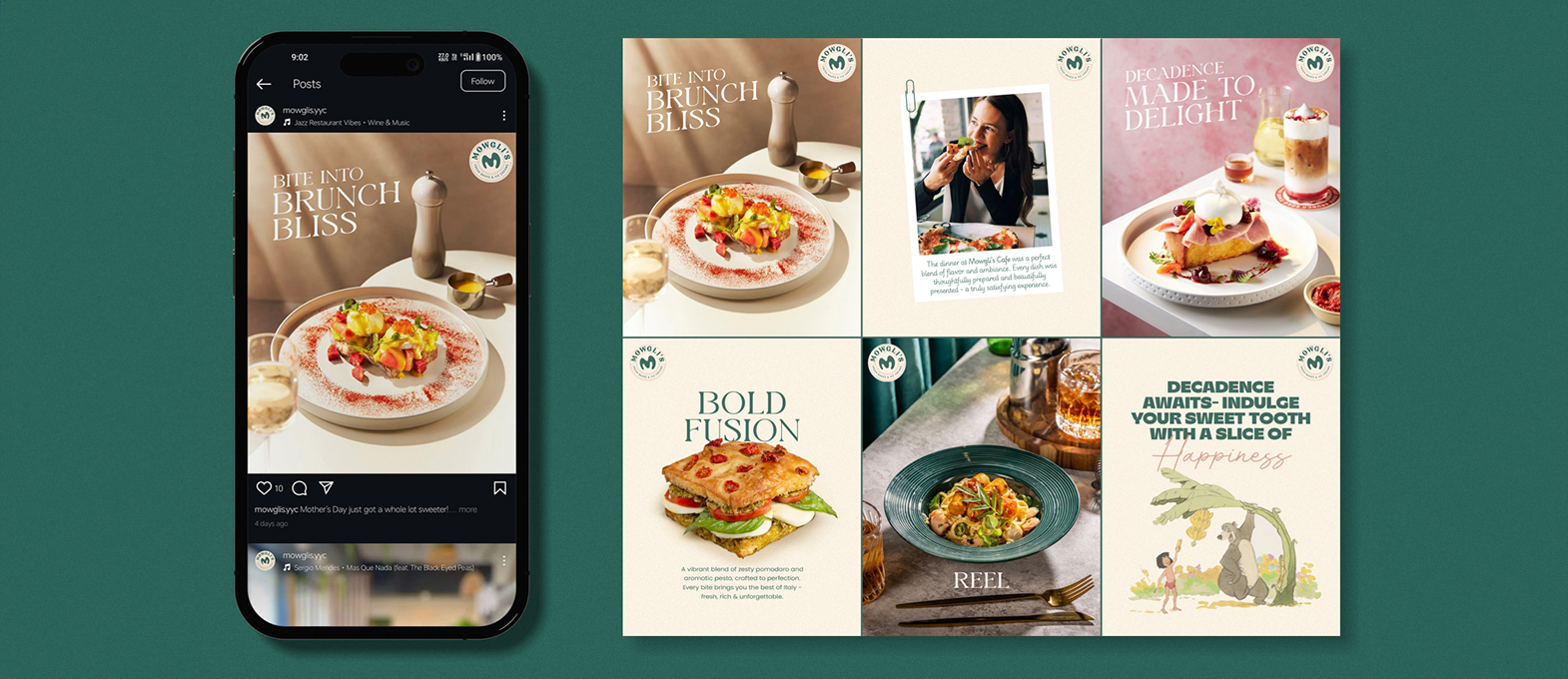 We developed a complete rebranding strategy for Mowgli’s Café, starting with a new logo that reflects its fun and inviting personality. Premium packaging designs were created to highlight its coffee and ice cream offerings with a modern edge. To complete the experience, we worked on café ambiance branding that makes the space more engaging and memorable, ensuring Mowgli’s Café continues to shine as a top destination.