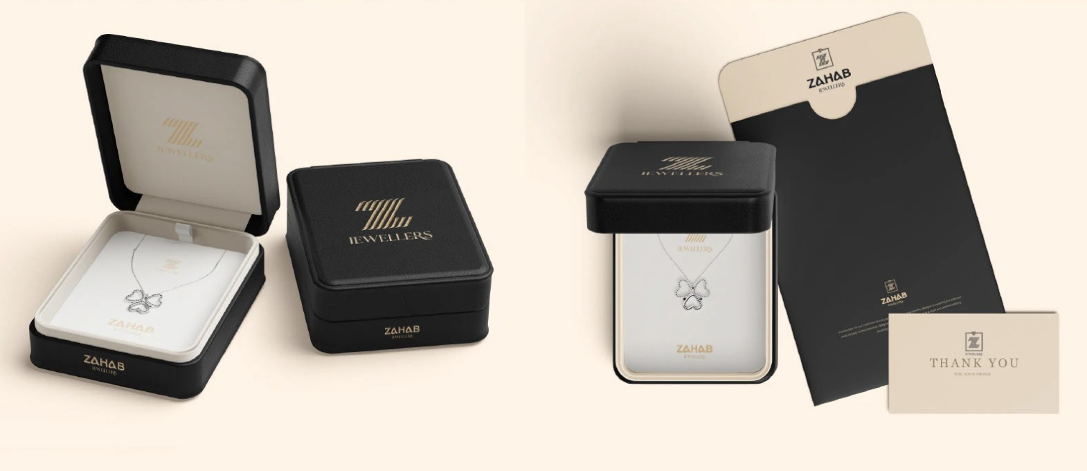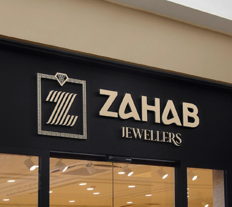 The jewellery market is highly saturated, with many brands relying on conventional gold-heavy visuals and generic luxury cues. Zahab Jewellers needed a distinct identity that felt premium, modern, and aspirational, without losing the emotional depth and trust associated with fine jewellery. The challenge was to create a brand system that could elevate perceived value while maintaining elegance, clarity, and consistency across packaging, retail signage, and customer-facing materials.